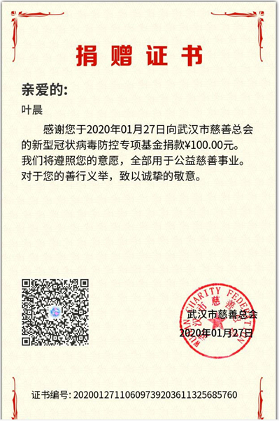 隔绝疫情,绝不是隔离真情;共克时艰,才能够打赢战役。正是通过这些有意义、有价值的活动,星星之火,汇聚成有爱的“线”和“面”,凝聚起我们致敬一线防疫工作人员、祝福武汉人民、祈愿祖国安康的强烈信念,才让这场寒冬战役变得温暖。战役无情人有情,让我们一起期待春暖花开,疫情不再!